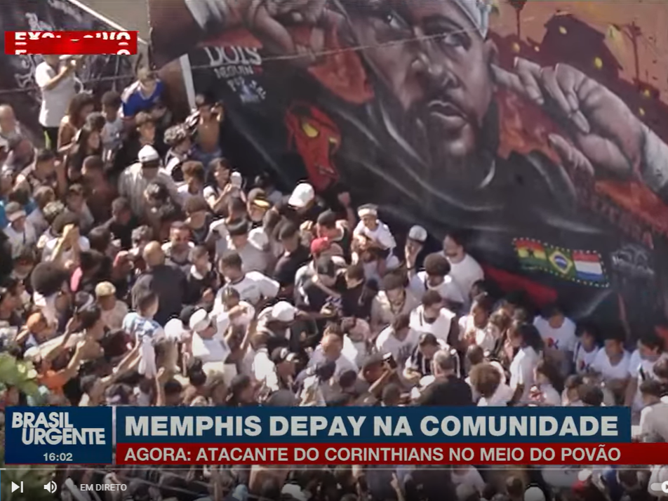 O atacante do Corinthians, Memphis Depay, foi visitar o muro em Taboão da Serra, que foi feito em sua homenagem e arrastou multidões pelas ruas de Taboão. pic.twitter.com/Xc8sWn4Sde
