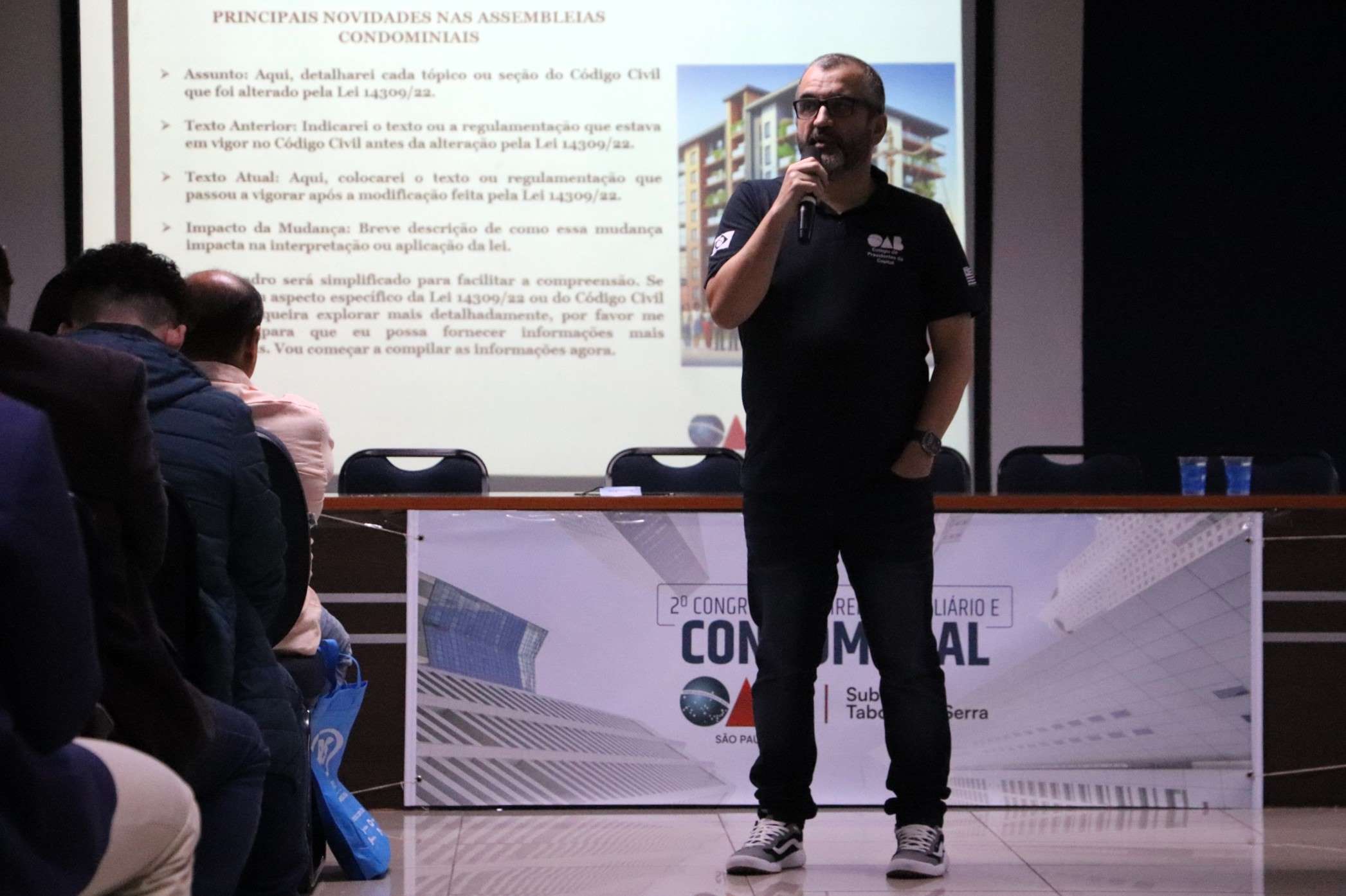 Na manhã de sábado, dia 23, a Ordem dos Advogados do Brasil – Subseção Taboão da Serra – realizou a segunda edição do Congresso de Direito Imobiliário e Condominial com a palestra de advogados renomados na área, como doutores Márcio Rachkorsky, Alexandre Fanti e Cesar Peghini. Mercado de trabalho, realidade da gestão condominial e técnicas para realização de assembleias foram os principais pontos abordados. O prefeito Aprígio foi um dos presentes e assinou o termo de concessão de terreno público para construção da sonhada Casa da Advocacia e Cidadania.