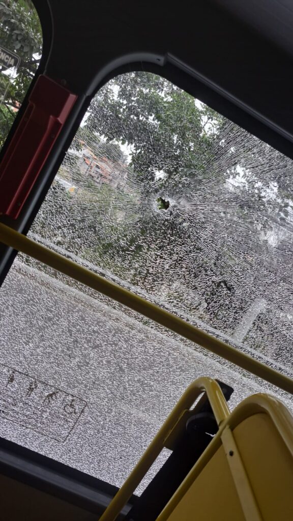 Três ônibus foram alvo de vandalismo em um intervalo de menos de 30 minutos na tarde desta terça-feira (1º), na Avenida Aprígio Bezerra da Silva, próximo ao shopping Taboão. Todos os coletivos tiveram vidros laterais estourados, comprometendo o transporte público municipal e intermunicipal na região.