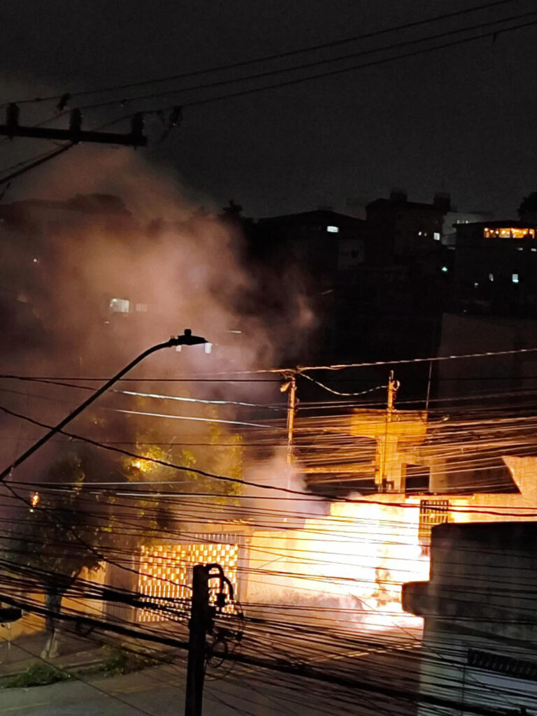 Na noite desta segunda-feira (23), moradores relataram que um fio com corrente elétrica estourou e pegou fogo naRua São Pedro, no Jardim São Pedro, em Taboão da Serra.