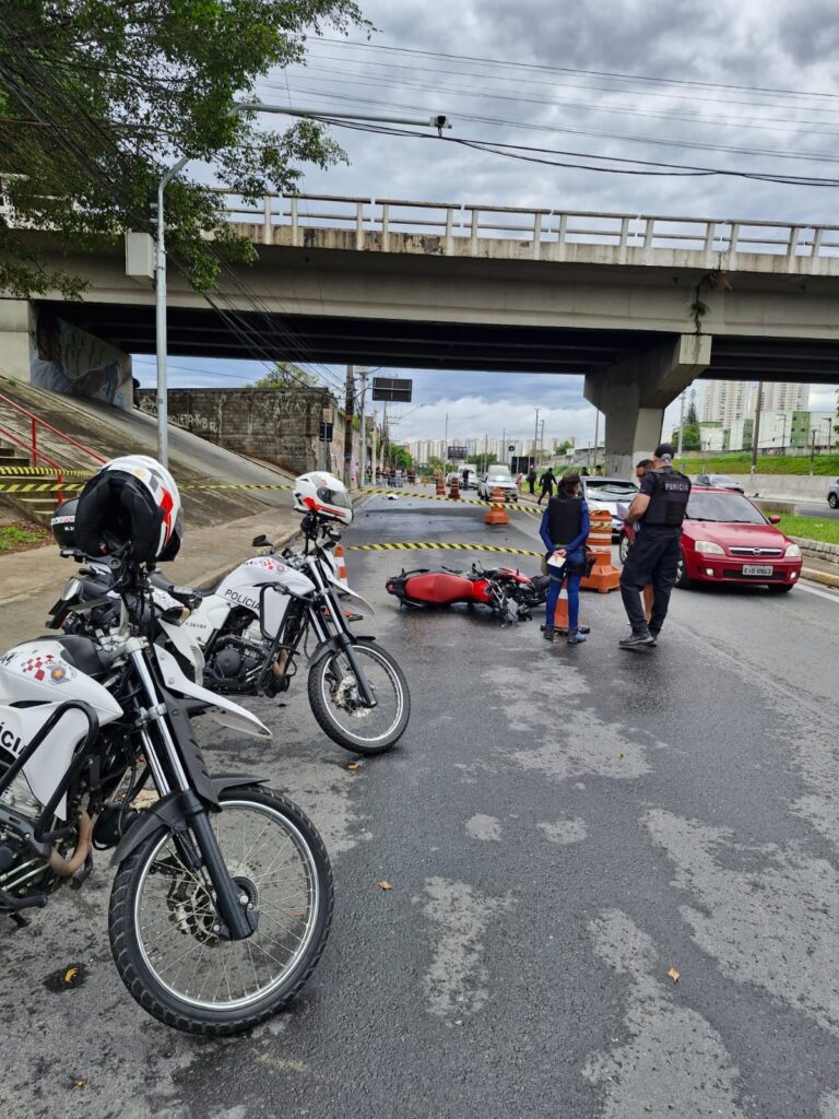 Na manhã deste sábado (8), um grave acidente foi registrado no viaduto que dá acesso à Avenida Paulo Ayres. Segundo informações, o condutor de uma motocicleta perdeu o controle do veículo e acabou caindo na via.