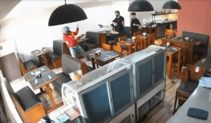 A sequência de crimes terminou quando ele invadiu um restaurante na avenida Dionysia Alves Barreto, na Vila Osasco, se passando por entregador. O proprietário do local, que é policial civil, reagiu e atirou contra o suspeito, que revidou. O confronto foi registrado por câmeras de segurança.